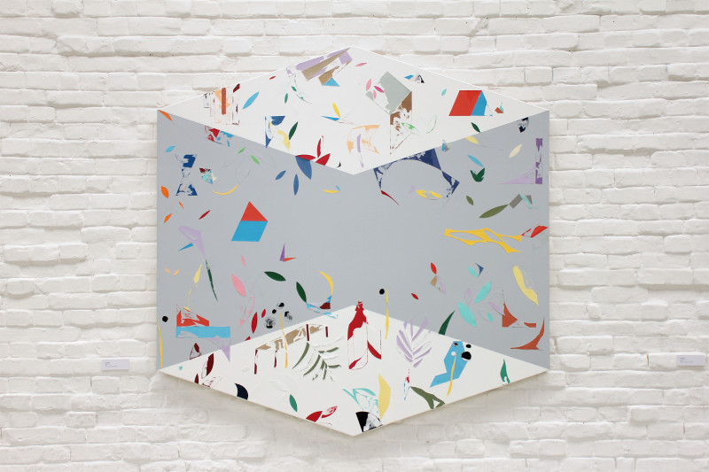 Viteluss, Ovum, Albumen 2017 collage paper and acrylic on canvas 60 x 180 cm, 180 x 180 cm, 180 x 180 cm